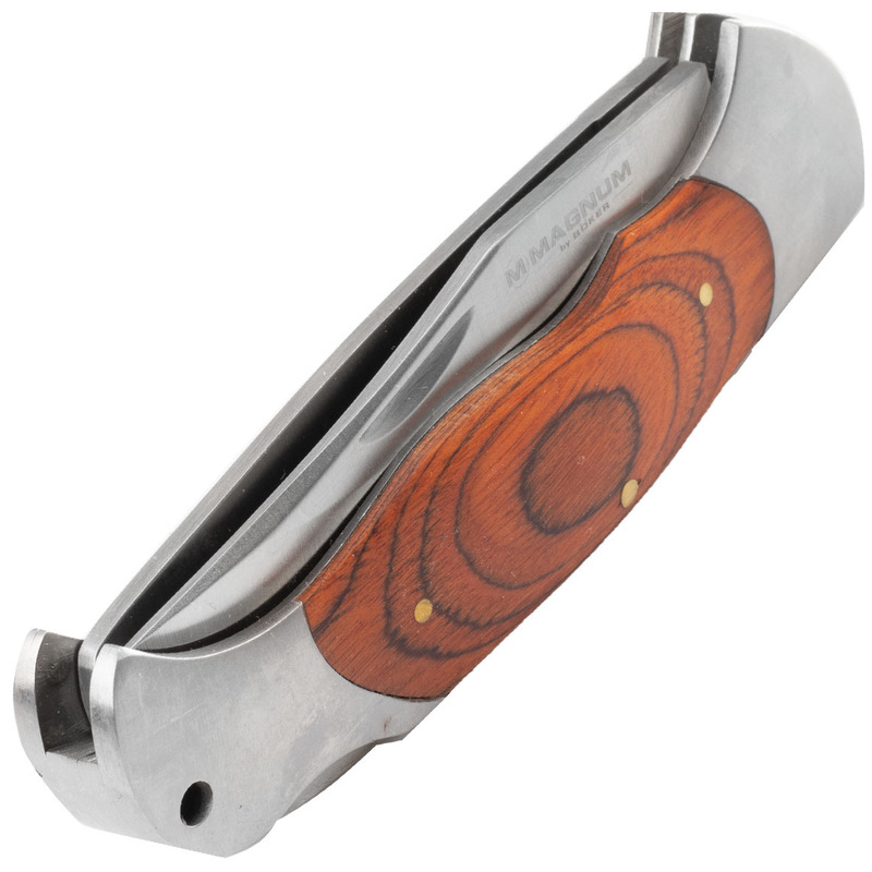 Magnum Classic Hunter Slim je štíhlejšia verzia Classic Hunter. Spoľahlivý, pevný nôž s čepeľou z ocele typu 440A, s podperami z nehrdzavejúcej ocele a črienkami rukoväte z dreva.
