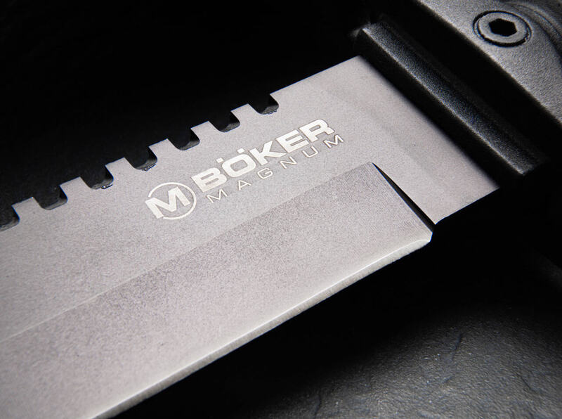 Masívny nôž na prežitie Magnum John Jay Survival Knife je pôsobivý nôž na prežitie v duchu filmov Rambo. Z dôvodov stability však Magnum JJSK nie je vybavený dutou rukoväťou, ale má pevnú rukoväť z nezničiteľného FRN. Vďaka dodatočnému pogumovaniu padne protišmyková rukoväť vždy bezpečne do ruky aj vo vlhkom prostredí a symetrická záštita ešte viac zvyšuje bezpečnosť pri práci. Otvory v záštite umožňujú upevnenie noža pomocou šnúrky, drôtu alebo sťahovacích pások, takže ho možno použiť napríklad aj ako provizórny oštep. Čepeľ Bowie vyrobená z nehrdzavejúcej ocele 7Cr17MoV je potiahnutá čiernou farbou a navyše vybavená typickou pílkou. Čierne plastové puzdro ponúka široké možnosti upevnenia na oblečenie a vybavenie vďaka početným otvorom, zatiaľ čo samotné pútko na opasok je riešené ako integrovaná spona. S praktickým otvorom na šnúrku.