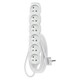 detské clonky: áno|dĺžka: 5 m|farba: biela|krytie: IP20|materiál zásuvky a vidlice: plast|max. záťaž: 2 300 W|napätie: 250 V~|počet zásuviek: 6|predajný obal: 1 ks, záves|prierez vodiča: 1,0 mm²|prúd: 10 A max.|typ izolácie: PVC|USB výstup: nie|vodič: H05VV-F3G|vypínač: áno