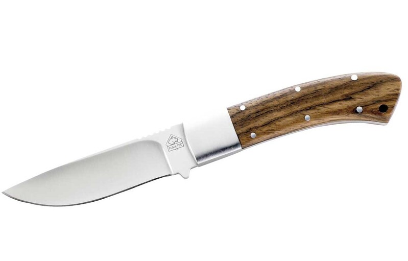 Lovecký nôž Puma TEC 312609 s pevnou čepeľou s hladkou hranou z nehrdzavejúcej ocele 420 s hladkou hranou. S nerezovým kovaním medzi čepeľou a rukoväťou. Rukoväť je z krásneho dreva Zebrano s dierkou na šnúrku. Dodáva sa s koženým puzdrom.
