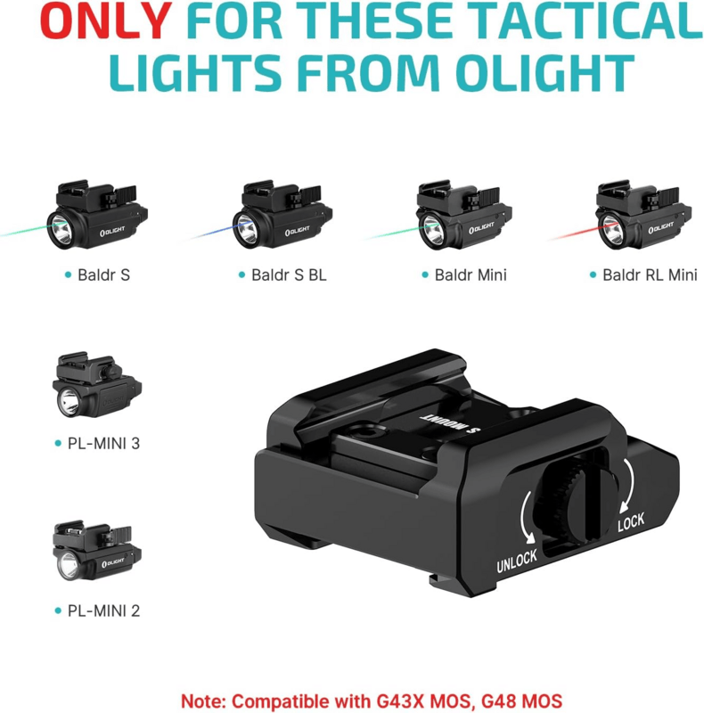 Adaptabilita: Táto montážna lišta je plne kompatibilná s rôznymi modelmi svetiel OLIGHT vrátane Baldr S, Baldr S BL, Baldr Mini, Baldr RL Mini, PL-MINI 3, a PL-MINI 2. Toto umožňuje flexibilitu pri výbere taktického svetla, ktoré najlepšie vyhovuje vašim potrebám.