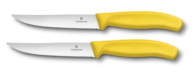 Steakové nože s polypropylénovou rukoväťou a dĺžkou zúbkovanej čepele 12 cm. Vhodné do umývačky riadov. Balené v blistri 2ks.