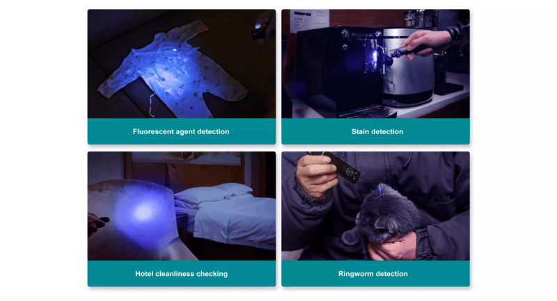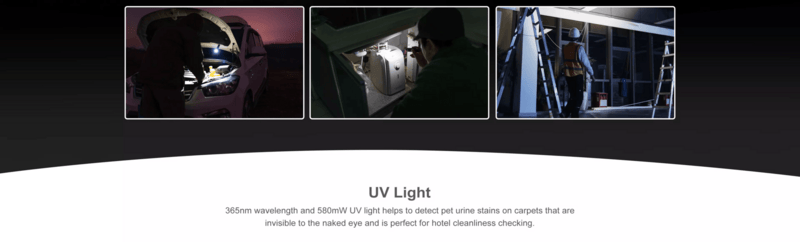 UV svetlo vyžaruje silné svetlo s výkonom 580 mW (vlnová dĺžka 365 nm), ktoré vám pomôže vidieť veci inak neviditeľné voľným okom. Od kontroly falošných peňazí, identifikácie fluorescenčných minerálov alebo hmyzu až po zabezpečenie čistoty vašej hotelovej izby.