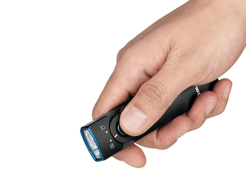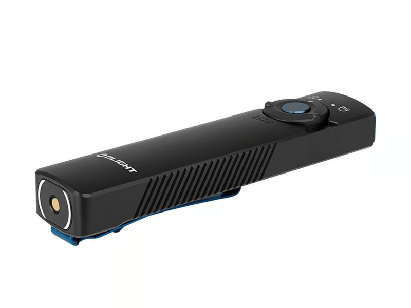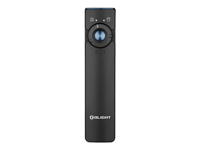 Kompaktná prenosná baterka Olight Arkfeld UV CW Black na každodenné nosenie, s bielym LED a UV svetlom. Tradičné biele LED svetlo s 5 úrovňami jasu a maximálnym výkonom 1 000 lúmenov v kombinácii s UV svetlom.