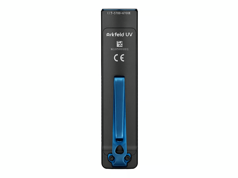 Dvojcestná spona pevne uchytí baterku na košeli, vrecku alebo klobúku pre jednoduché nosenie. Spona tiež obsahuje integrovaný otvor na šnúrku. Arkfeld UV má tiež magnetickú základňu, ktorá umožňuje jednoduché pripevnenie na kovový povrch.