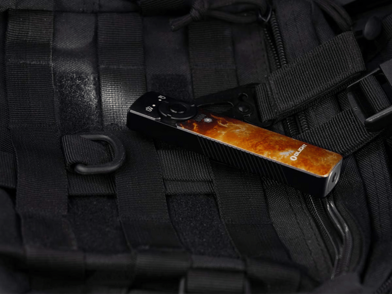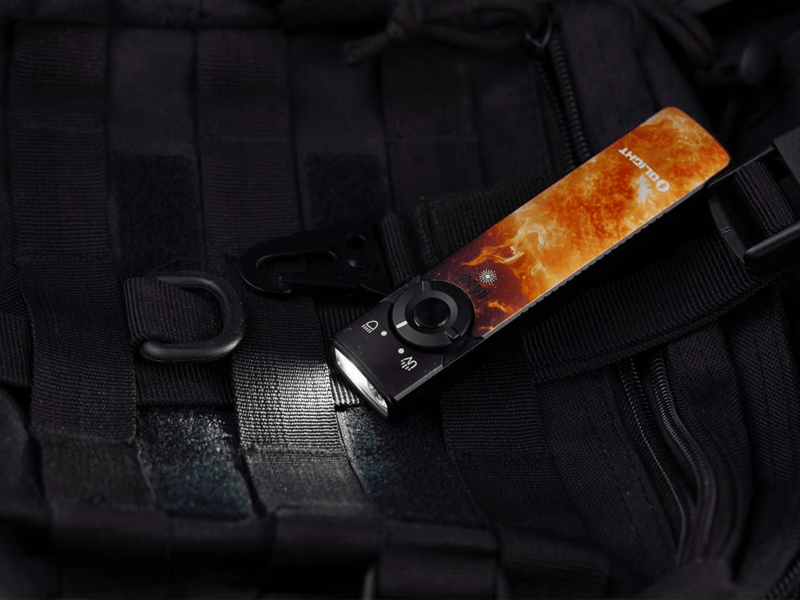 Kompaktná prenosná baterka Olight Arkfeld UV Sunburst na každodenné nosenie, s bielym LED a UV svetlom. Tradičné biele LED svetlo s 5 úrovňami jasu a maximálnym výkonom 1 000 lúmenov v kombinácii s UV svetlom.