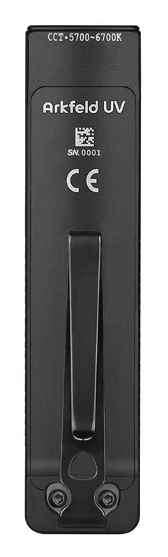 Obojsmerný klip pevne uchytí na košeľu, vrecko alebo klobúk pre jednoduché prenášanie. Klip tiež obsahuje integrovaný otvor na šnúrku. Arkfeld UV má tiež magnetickú základňu, ktorá umožňuje ľahké pripevnenie na kovový povrch.