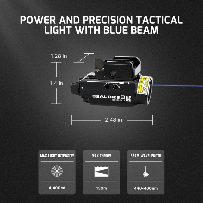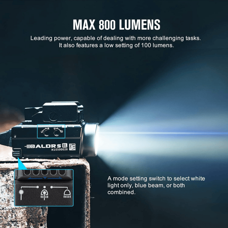 ● Vylepšený výkon: Kombinuje vysoko viditeľný laser triedy IIIA s vlnovou dĺžkou 440~460nm BL (<5mW) a biele svetlo s intenzitou 800 lúmenov a výdržou až 140 minút. Jasnejší ako bežný RL laser, ale nie tak oslepujúci ako GL laser pri použití na krátke vzdialenosti.