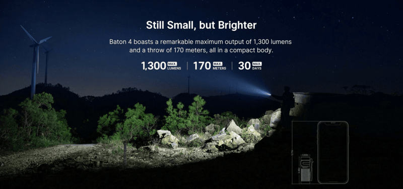 Toto je prémiová verzia Baton 4, ktorá obsahuje prenosné bezdrôtové puzdro umožňujúce dobitie baterky až 5-krát, čo je ideálne na kempovanie alebo keď ste na cestách.