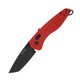 So špicatou čepeľou s hladkou hranou z nástrojovej ocele D2 s čiernym PVD povrchom, otvára sa s posuvným tlačidlom na čelnej strane rukoväte.