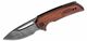 Má čepeľ s hladkou hranou typu Drop Point z ocele CPM-S90V so saténovou povrchovou úpravou, otvára sa manuálne palcovými kolíkmi a zaisťuje ju poistka AXIS. S klasickými modrými prvkami.