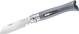 Rukoväť je z polopriehľadného G10 a čierneho titánu, so sponou na vrecká.