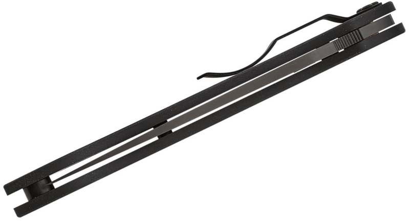 Rukoväť: Rukoväť z textúrovaného materiálu G10 v čiernej farbe ktorý je známy svojou odolnosťou, pevnosťou a vynikajúcim úchopom. Tento materiál je ideálny na použitie v náročných podmienkach a poskytuje pohodlný a bezpečný úchop. Kompaktná veľkosť rukoväte zaisťuje pohodlné nosenie a používanie.