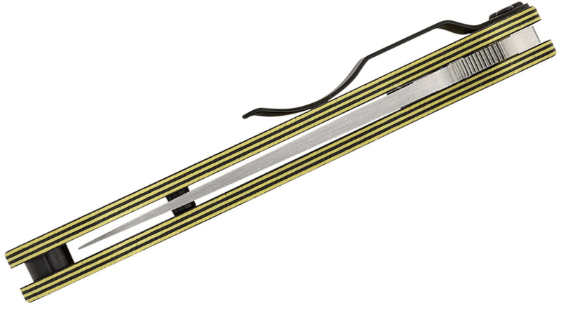 Rukoväť: Rukoväť v kombinácii žltej/čiernej G10, s Spyderco’s Caribbean Bi-Directional Texture vzorom, poskytuje protišmykový úchop a výrazný vzhľad, čím zaručuje pohodlie a kontrolu aj v mokrých alebo náročných podmienkach.