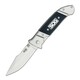 Má čepeľ s hladkou hranou z nerezovej ocele AUS 10A typu Tanto, s povrchovou úpravou Stonewash, otvára sa obojstranným palcovým kolíkom a zaisťuje ju patentovaná poistka Tri-Ad Lock.