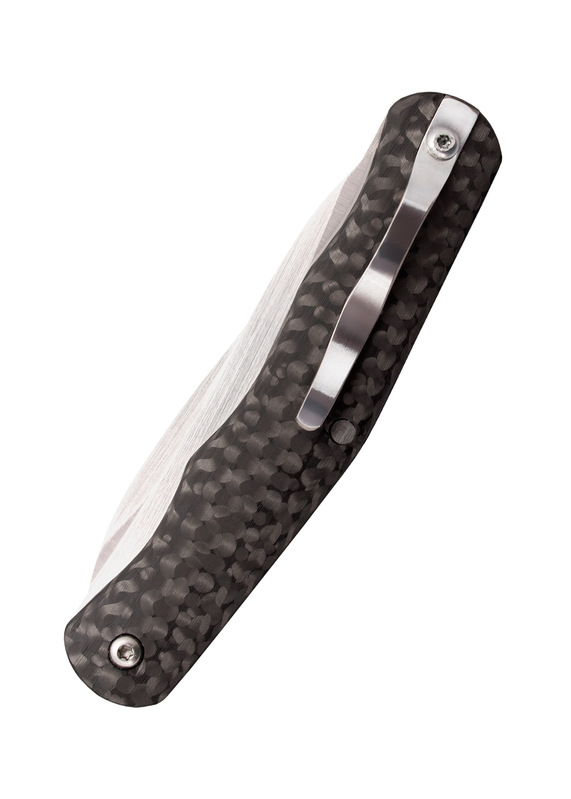 Rukoväť je vyrobená z uhlíkových vlákien, ktoré udržujú nôž veľmi ľahký a dodávajú mu elegantný vzhľad. S odnímateľnou sponou na vrecká.