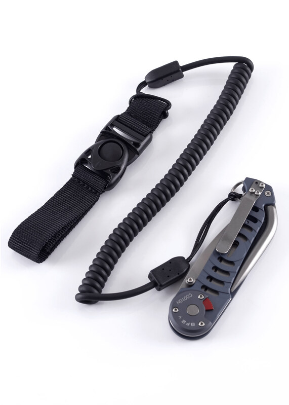 Rukoväť je z eloxovaného hliníka šedej farby, s otvormi na rýchle opláchnutie pri kontakte so slanou vodou. S hrotom Merlin a sponou na vrecká.