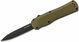 Rukoväť je vyrobená z textúrovaného materiálu G10 zelenej farby, s dierkou na šnúrku a sponou na vrecká.