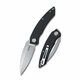 S čepeľou s hladkou hranou typu Drop Point z pevnej nástrojovej ocele D2 so šedou povrchovou úpravou, otvára sa vyklápačom Flipper a zaisťuje ju zámok Framelock.