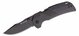 Má čepeľ s hladkou hranou typu Drop Point z ocele 440 s matnou šedou povrchovou úpravou a otvára sa palcovými kolíkmi na čepeli a zaisťuje ju Backlock.