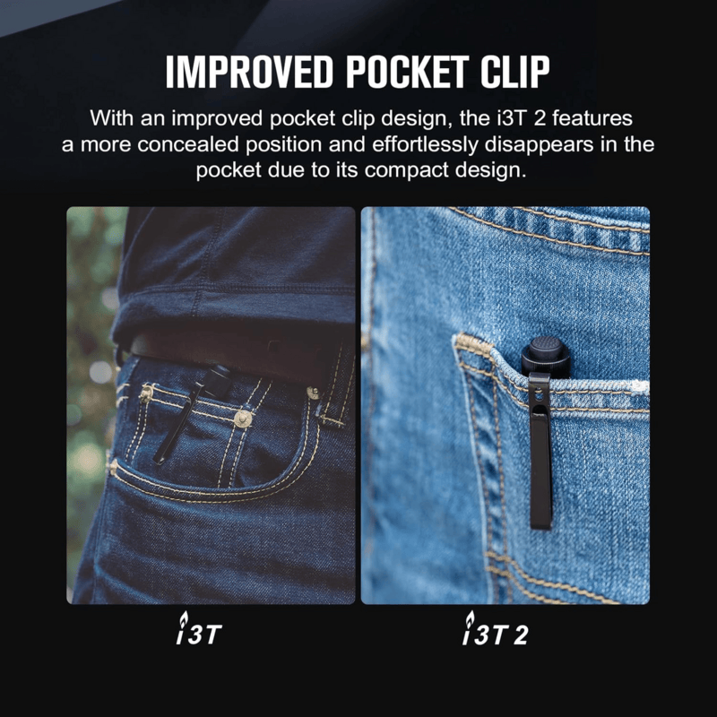 S vylepšeným dizajnom klipu na vrecko, ktorý ponúka viac skrytú polohu a vďaka kompaktnému dizajnu sa ľahko stratí vo vrecku. Klip je pripevnený k zadnému krytu, čo zabraňuje jeho odpojeniu od tela baterky. Jednoducho ho pripevnite na okraj klobúka pre použitie bez rúk.