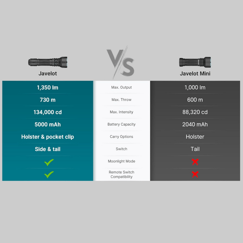 Navrhnutá pre dlhý dosah: S intenzitou 134 000 kandela dokáže Javelot vyslať sústredený lúč až do vzdialenosti 730 metrov, čo je najďalej vo svojej veľkosti, umožňujúc identifikáciu cieľov z diaľky.