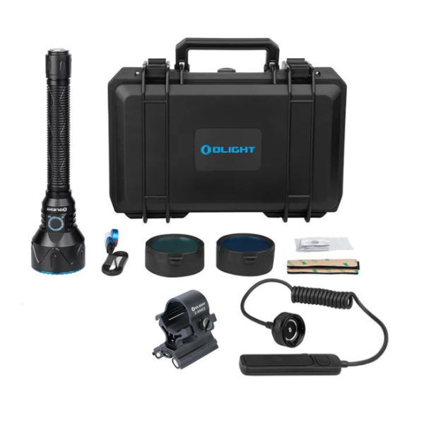 OLIGHT JAVELOT PRO 2 má bohaté voliteľné taktické príslušenstvo, ako je držiak na zbraň, filtre a diaľkový tlakový spínač.