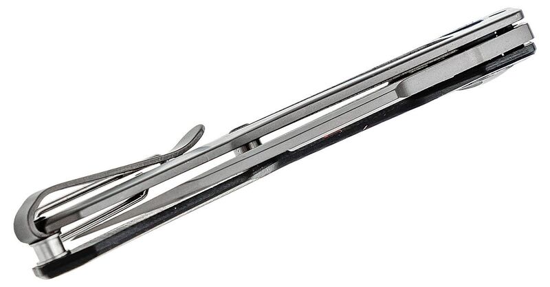 Čepeľ je vyrobená z nerezovej ocele 8Cr13MoV s kombinovanou PVD a saténovou povrchovou úpravou. Otvára sa manuálne a v otvorenej pozícii je čepeľ držaná poistkou Frame Lock. Zadná strana rukoväte je oceľová, predná strana je vyrobená z materiálu G10 s povrchom z uhlíkových vlákien. Nôž má na vrchnej strane rukoväte karabínu, takže si ho môžete pripnúť na vestu, nohavice, tašku prípadne ruksak. Samozrejmosťou je spona na nosenie vo vrecku.