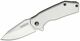 Čepeľ vyrobená z kvalitnej ocele 154CM so saténovým povrchom, sa otvára otvorom v čepeli a v otvorenej pozícii ju drží poistka Button lock.