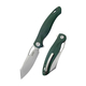 Tvarovaná rukoväť je vyrobená z odolného materiálu G10 zelenej farby, s povrchom s pohodlným uchopením. S otvorom na šnúrku a sponou na vrecká.