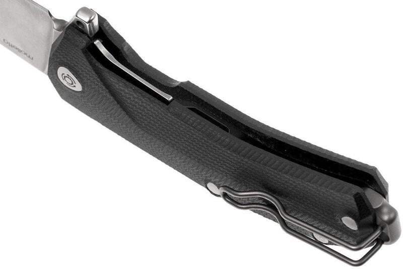 Čepeľ vyrobená z ocele Sleipner sa otvára flipperom a v otvorenej pozícii ju drží poistka Linerlock. Rukoväť je vyrobená z odolného materiálu G10. Nôž je vybavený otvorom na šnúrku a sponou na nosenie vo vrecku.