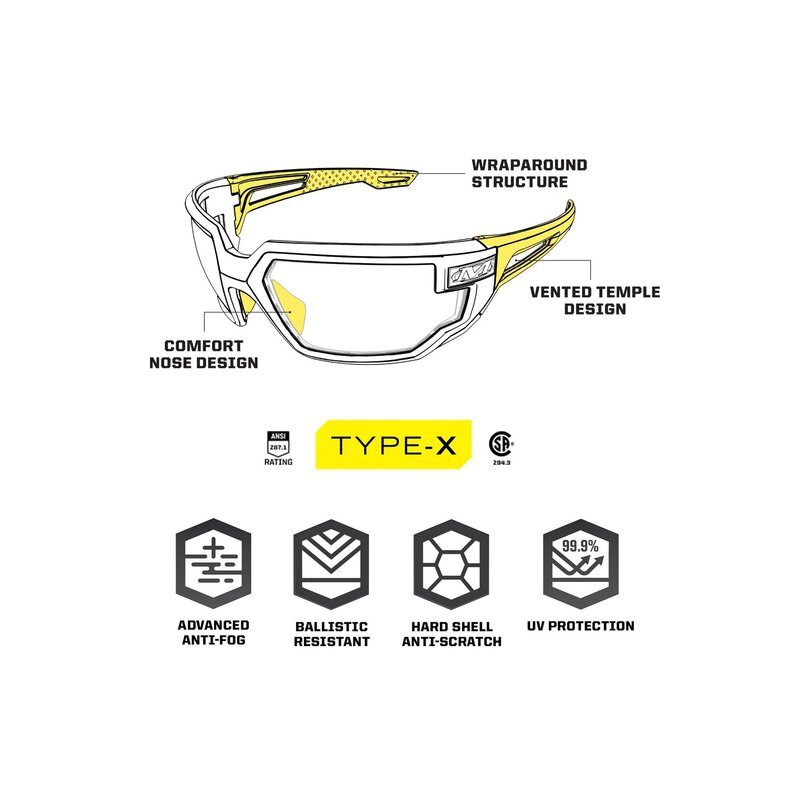 Celorámový dizajn obsahuje duálne šošovky vylepšené tvrdou vrstvou odolnou proti poškriabaniu na vonkajšej strane šošovky a pokročilou technológiou proti zahmlievaniu na vnútornej strane, ktorá vytvára jasnú viditeľnosť bez vlhkosti, keď ju najviac potrebujete.