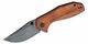 S čepeľou so zúbkovanou hranou s obojstranným brúsením z ocele so Stonewash povrchom, otvára sa pomocou predného vyskakovania OTF (Out the Front), zaisťuje ju posuvný mechanizmus Slide Lock.