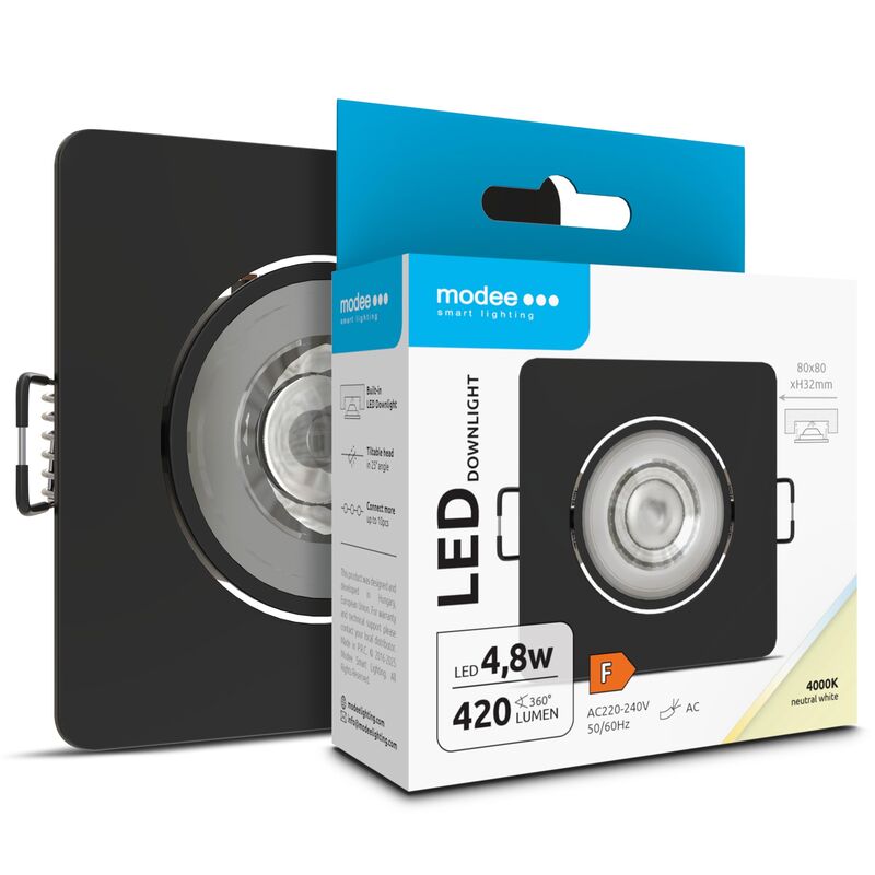 Modee LED štvorcové svietidlo 4,8W 420lm D80xH32mm, neutrálna biela, čierna (ML-DL4000K4,8WSR-BN)