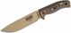 S pevnou čepeľou s hladkou hranou z ocele 14C28N, prechádza celým nožom (full-tang).