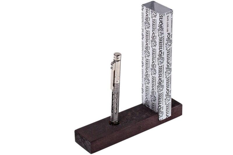 Exkluzívny nástroj Nyala Pen Damascus Grey Shine preklenuje rozdiel medzi taktickým a pánskym perom. Má titánové telo streibornej farby s vložkou z damaškovej ocele s výrezmi na skutočné telo. Dodáva sa s dreveným puzdrom, ktoré možno použiť ako držiak na pero.