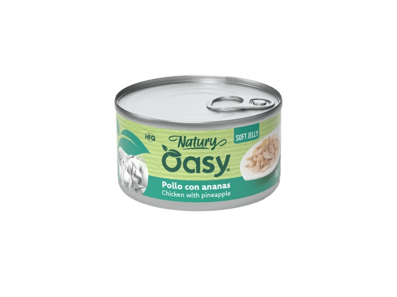 Oasy Natury Soft Jelly Chicken with Pineapple 85 g je doplnkové mokré krmivo pre dospelé mačky. Jemná želé štruktúra s kuracím mäsom a ananásom poskytuje výbornú chuť, ľahkú stráviteľnosť a prirodzenú výživu.