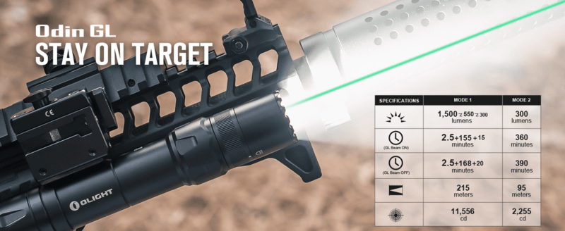 OLIGHT Odin GL je špičkové svetlo na zbraň, ideálne pre profesionálov aj športových strelcov. Či už ste poľovník, venujete sa taktickej streľbe alebo pracujete v bezpečnostných zložkách, toto svetlo je pre vás. Ponúka výkon až 1500 lúmenov a dosah lúča 215 metrov. Má tri režimy: biele svetlo, samostatný GL lúč (laser) alebo ich kombináciu, ktoré sa jednoducho ovládajú spínačom na konci svietidla.