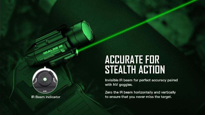 Laserový zameriavač vyžaruje infračervený lúč bezpečný pre oči (viditeľný iba v zariadeniach na nočné videnie) s výkonom 850 nm. Po zapnutí infračerveného režimu je jeho činnosť indikovaná zelenou LED diódou na zadnej strane svietidla.