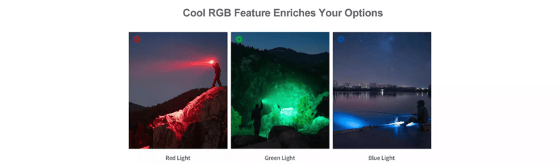 RGB červené svetlo je vhodné na núdzovú signalizáciu. Pomáha zvýšiť bezpečnosť v prípade autonehody alebo môže pomôcť pri rýchlejšom hľadaní ak sa stratíte. Môže sa používať aj ako nočné svetlo.