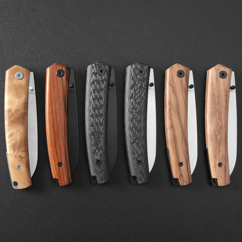 PF719 Patte je stredne veľký zatvárací nôž s klasickým, priamočiarym dizajnom, ktorý nikdy nevyjde z módy. Čepeľ je vyrobená z nehrdzavejúcej ocele Sandvik 14C28N a má tvar sheepsfoot, ktorý ponúka vynikajúce rezacie a sekanie schopnosti. Rukoväť je hladká a má štíhly dizajn, ktorý sa dobre hodí do vrecka aj do ruky. Na výber máte z troch druhov dreva alebo Carbon Fiber, aby ste si mohli vybrať podľa svojho vkusu alebo potrieb. Patte je jednoduchý a klasický vreckový nôž, ktorý je nevyhnutnosťou za túto cenu.