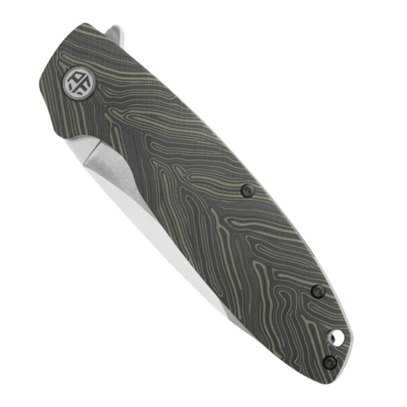 Terra PFB01 je robustný flipper nôž, ktorý vyniká pri každodenných úlohách, či už doma alebo v prírode. Je vyrobený z nádherného zeleného G-Mascus, ktorý je jemne textúrovaný, a tvar prednej časti črienok pohodlne zodpovedá prirodzenej polohe vašich prstov. Čepeľ sa ľahko otvára stlačením flipper tabu a vďaka keramickým guľôčkovým ložiskám v čape sa rýchlo otvorí. Samotná čepeľ má drop point dizajn a je vyrobená z vysoko kvalitnej D2 ocele, ktorá je tepelne upravená, tvrdá, odolná a ostrá. Terra je vybavená deep-carry vreckovým klipom z nehrdzavejúcej ocele a má pohodlnú hmotnosť vo vrecku, ktorá vás uisťuje, že je pripravená na použitie.
