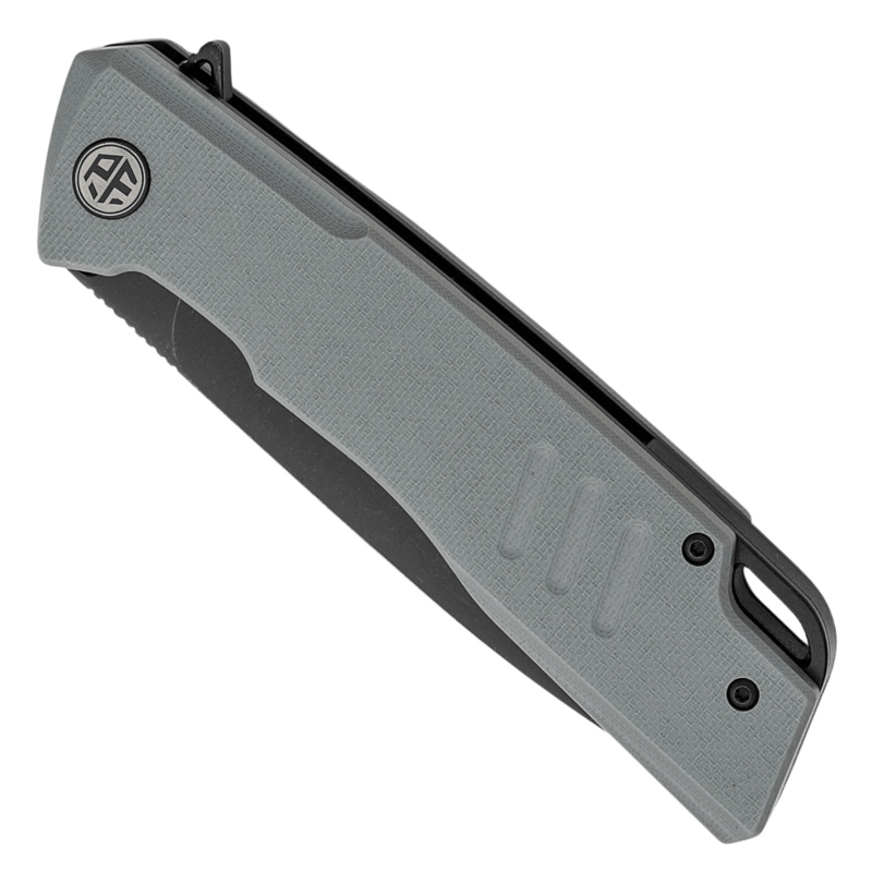 PFB02 Loco od Petrified Fish je veľký flipper nôž s robustným dizajnom, ktorý zvládne aj náročné úlohy. Široká rukoväť je vyrobená z odolného a voči poveternostným vplyvom odolného G10, pričom obsahuje drážku na prst a textúrovanie, ktoré zabezpečujú pevné uchopenie noža. Liner a G10 backspacer sa tiahnu pozdĺž chrbta rukoväte noža a vytvárajú otvor na šnúrku. Čepeľ noža Loco sa otvára pomocou jimped flipper tabu a vďaka uzavretým keramickým ložiskám sa rýchlo a ľahko používa. Samotná čepeľ je vyrobená z pevnej ocele D2, čo je skvelá voľba pre EDC nože, a má široký, drop point dizajn, ktorý poskytuje veľkú silu pri sekaní. Loco je dodávaný s nerezovým vreckovým klipom.