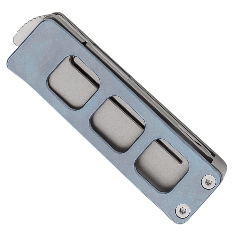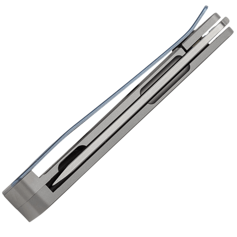 Elegantný a atraktívny kúsok výbavy, ktorý si môžete vziať so sebou, PFE09 Cash front flipper nôž kombinuje štýl a funkčnosť, čím sa stáva skvelým prírastkom do vašej zbierky. Čepeľ noža Cash je vyrobená z nerezovej ocele 14C28N a má dizajn dláta, ktorý maximalizuje reznú plochu malej 1,81" čepele. Skvelý na rezanie a škrabanie, čepeľ je vysoko funkčná aj napriek svojej veľkosti. Rukoväte sú vyrobené z titánu a majú zabudovaný frame lock dizajn. Kľúčovou vlastnosťou noža Cash je veľký skeletovaný titánový klip na vrecko, ktorý je navrhnutý tak, aby slúžil aj ako klip na peniaze. Tento nôž je elegantný a je skvelou voľbou pre tých, ktorí nechcú mať vrecko plné objemnej peňaženky.