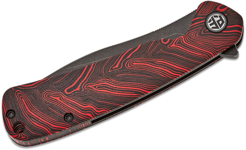 PFE14RDMW Petrified Fish PFE14 Rogue Black Stonewashed 154CM Red Gmascus G10