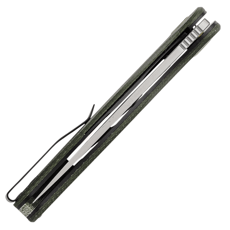 PFP06 Simum je stredne veľký flipper nôž s elegantným profilom. Čepeľ je vyrobená z K110 nástrojovej ocele a má trailing point dizajn, ktorý vyniká pri krájaní a prepichovaní. Čepeľ sa otvára pomocou flipper tabu a rýchlo sa rozloží na uzavretých keramických guľôčkových ložiskách v čape. Rukoväte majú drážku na prst a vypuklinu v strede, ktorá sa pohodlne prispôsobí vašej dlani. Rukoväte sú dostupné v niekoľkých farbách odolného Micarta, čo robí nôž ideálnym pre použitie v prírode. Nôž je vybavený deep carry nerezovým vreckovým klipom pre jednoduché prenášanie.