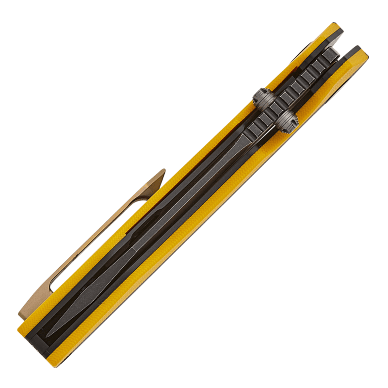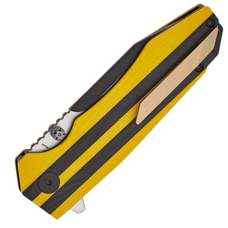 PFP08 Mocado je väčší flipper nôž s rýchlym a svižným otváraním. Tanto čepeľ má dĺžku niečo cez 3,5" a je vyrobená z odolnej nástrojovej ocele K110. Čepeľ sa otvára s rázom vďaka guľôčkovému ložisku v čape a pevne sa uzamkne pomocou liner locku. Elegantné črienky sú vyrobené z dvoch rôznych farieb G10, ktoré sú skombinované do pútavého vzoru. Črienky sú CNC-tvarované a poskytujú vynikajúci úchop aj v mokrých podmienkach. Veľkosť črienok robí z tohto noža plnohodnotný 4-prstový nôž, pričom jemná textúra na G10 zaručuje, že si počas používania udržíte kontrolu. Mocado patrí pevne do kategórie EDC vreckových nožov a za túto cenu by ste si ho nemali nechať ujsť.