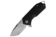 Má čepeľ s čiastočne zúbkovanou hranou typu Tanto z nerezovej ocele 4034 s čiernou povrchovou úpravou, otvára sa posuvným palcovým čapom na čepeli alebo pomocou tlačidla, zaisťuje ju Linerlock.