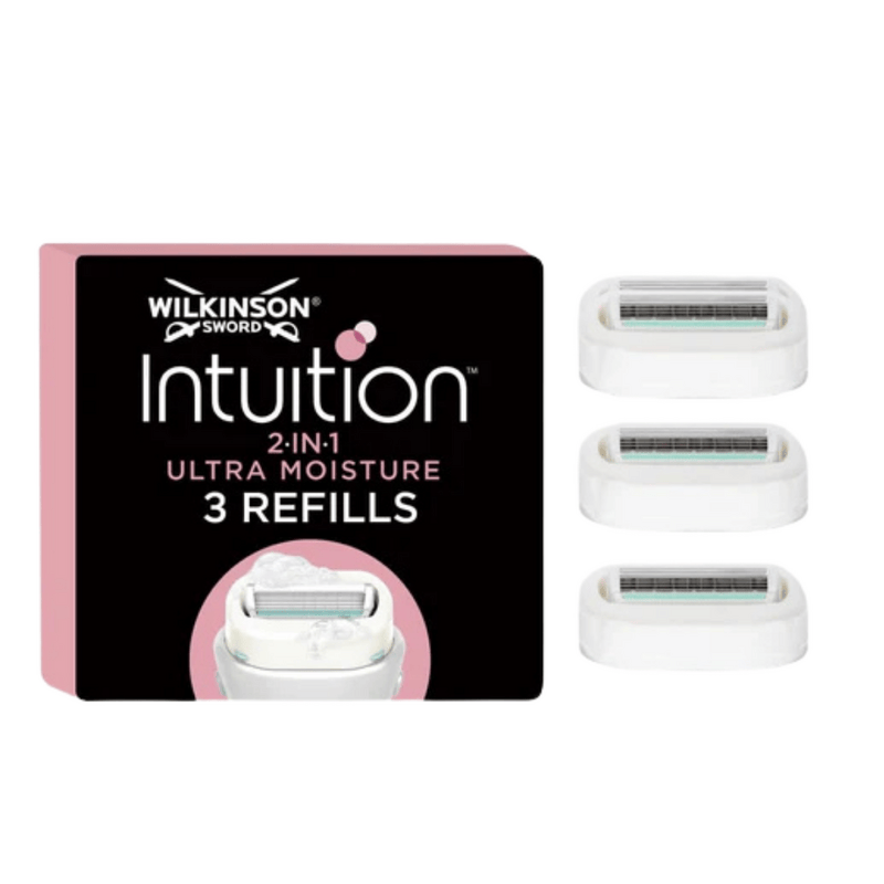 3 náhradné hlavice so 4 čepieľkami Wilkinson Intuition 2in1 Ultra Moisture s hydratačným bambuckým maslom poskytnú všetko, čo potrebujete, v jednom jednoduchom a praktickom nástroji.